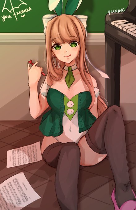 commission from a while back: bunny girl Monika - surely it'll help us get more club members... right? #JustMonika #DDLC #DokiDokiLiteratureClub #ドキドキ文芸部