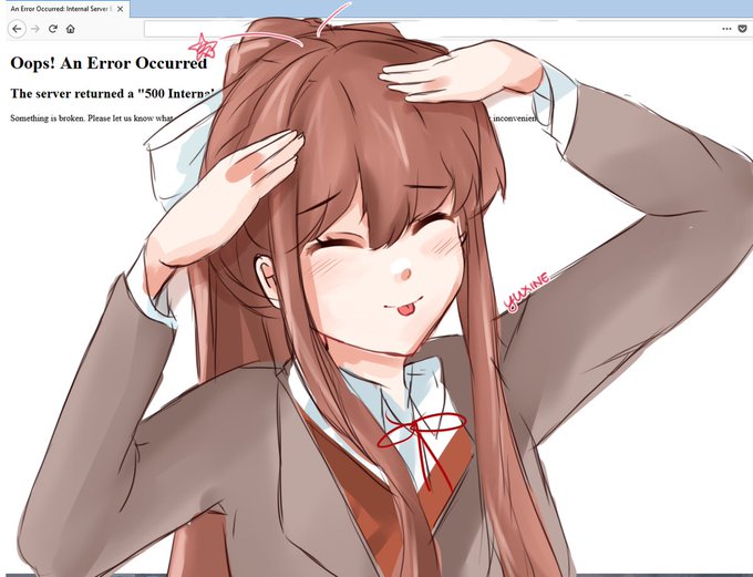 Oops!! Did you see that? Ugh, the server's down! I'm so clumsy! Sorry~ I'll make it up to you, I promise! How about a date with me? 1101 perhaps at 1111 000010? Haha, just a joke! #JustMonika #DDLC #DokiDokiLiteratureClub #ドキドキ文芸部