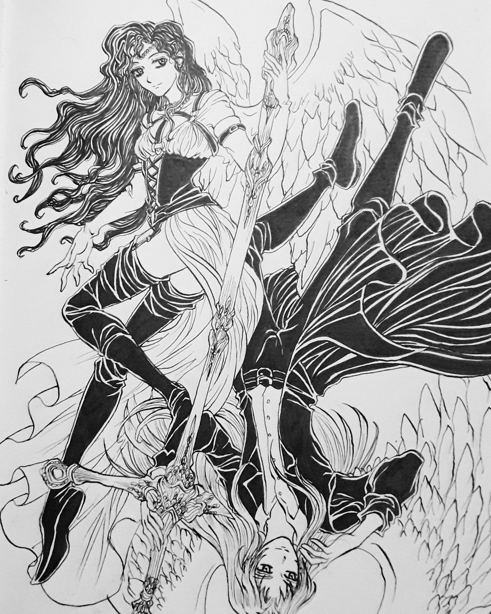 Bonsoir 😃! Jour 11 sur le thème des anges, avec angel sanctuary! Ça fait longtemps que je ne lis plus du kaori yuki mais j'avais une période où j'étais à fond dans toutes ses séries! Bonne nuit 😘! #inktober2019 #manga #kaoriyuki #angelsanctuary #rosiel #alexiel #angel #fanart