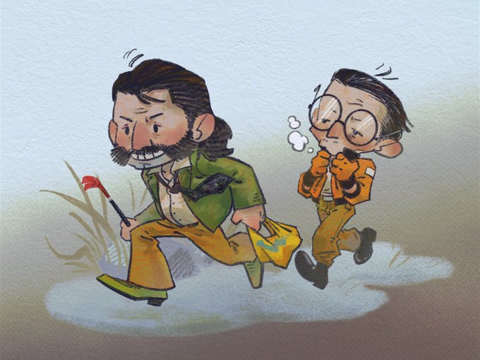 Sunrise, Parabellum 🌅 / Tequila Sunset 🍹 #DiscoElysium #KimKitsuragi #HarryDuBois #ArtistOnTwitter