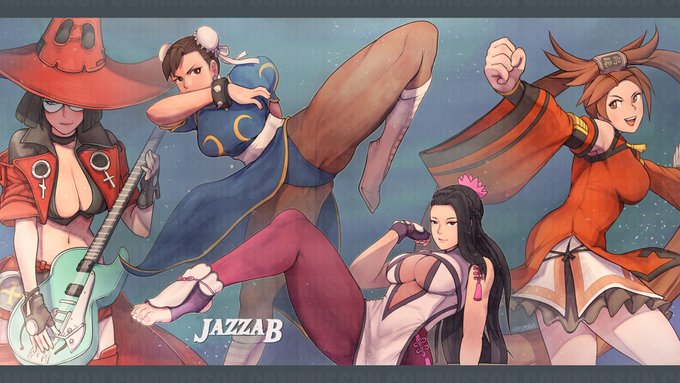 A commission of stick art/desktop wallpaper. I-No x Chun Li x Luong x Jam #StreetFighter #GuiltyGearStrive #KOFXIV
