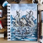 31. Shipwreck. Aaaand with this one #inktober2022 is done, using #huionhauntober2022 prompt list. I've done it with black, brown and blue ink from @fabercastellglobal + white @poscaespana #ink #inktober #shipwreck #kraken #miniaturepainting instagr.am/p/CkYoTKWK7tZ/
