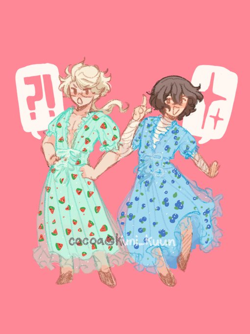 #kunikidazai doodl in the watermelon n blueberry dresses....... #BungouStrayDogs #Kunikida #Dazai
