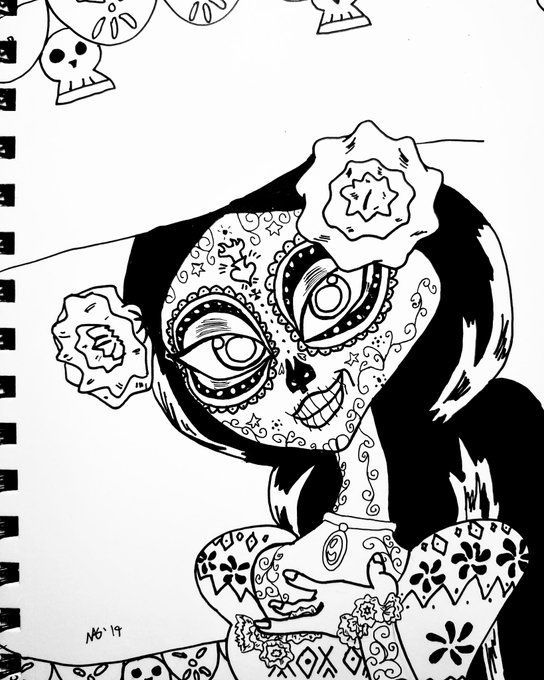 A tiny bit late, but here's day 10!! #inktoberday10 #inktober2017 #inktober #lamuerte #thebookoflife #tbol