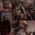 From my 2011 IMMORTALS story written by @ronmarz . A peek into the process. Art image is cropped slightly by the app. #kayananart #greekgods #graphicnovel #anthology #digitalart #film #comicbookart #breakdown #sketch #layouts #sword #shield
