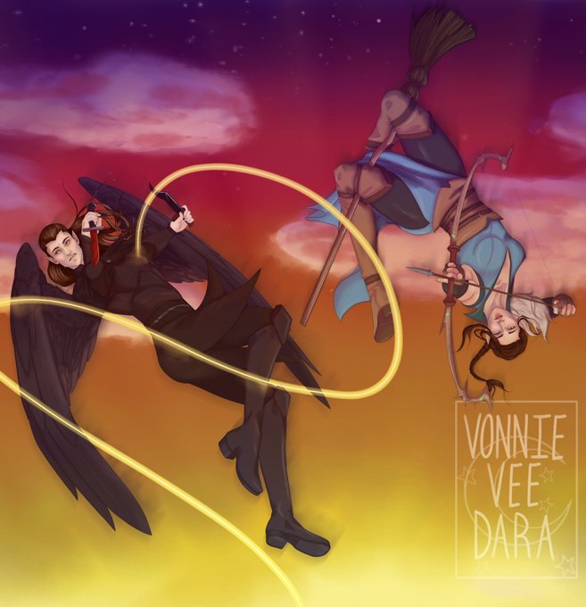 "I have a broom and you get f***ing wings..." I finally finished the twins. These are probably the best drawings I've done in four months. 🥹 Characters belong to @LauraBaileyVO & @VoiceOfOBrien #LegendOfVoxMachina #dndart #criticalrolefanart #artist #CriticalRole