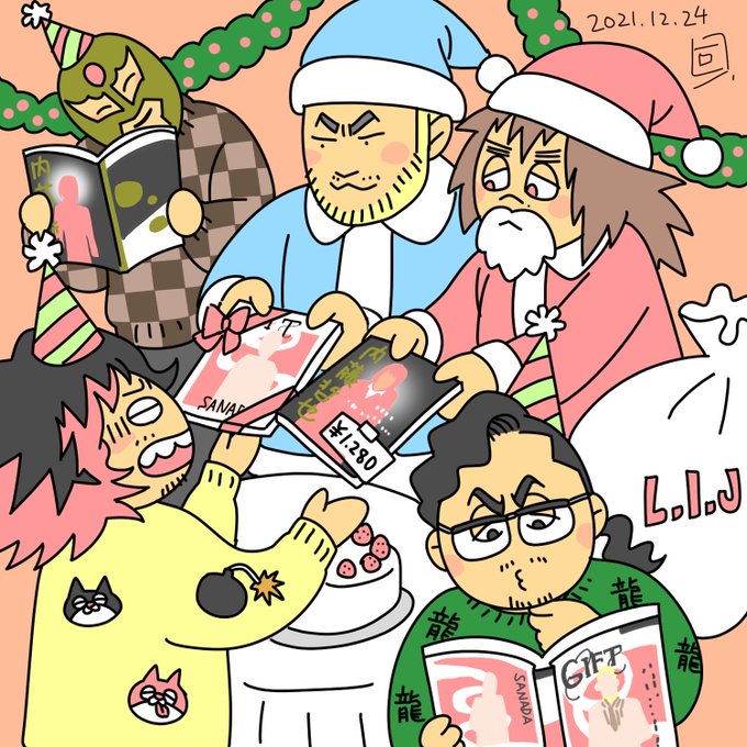 「L.I.Jの兄さん達と好きな物」 大阪大会でフォロワーさんにお渡ししたポストカード用のイラスト。 時間がなくてササッと描いた…😅💧 #LOSINGOBERNABLESdeJAPON #njpw #njpwfanart