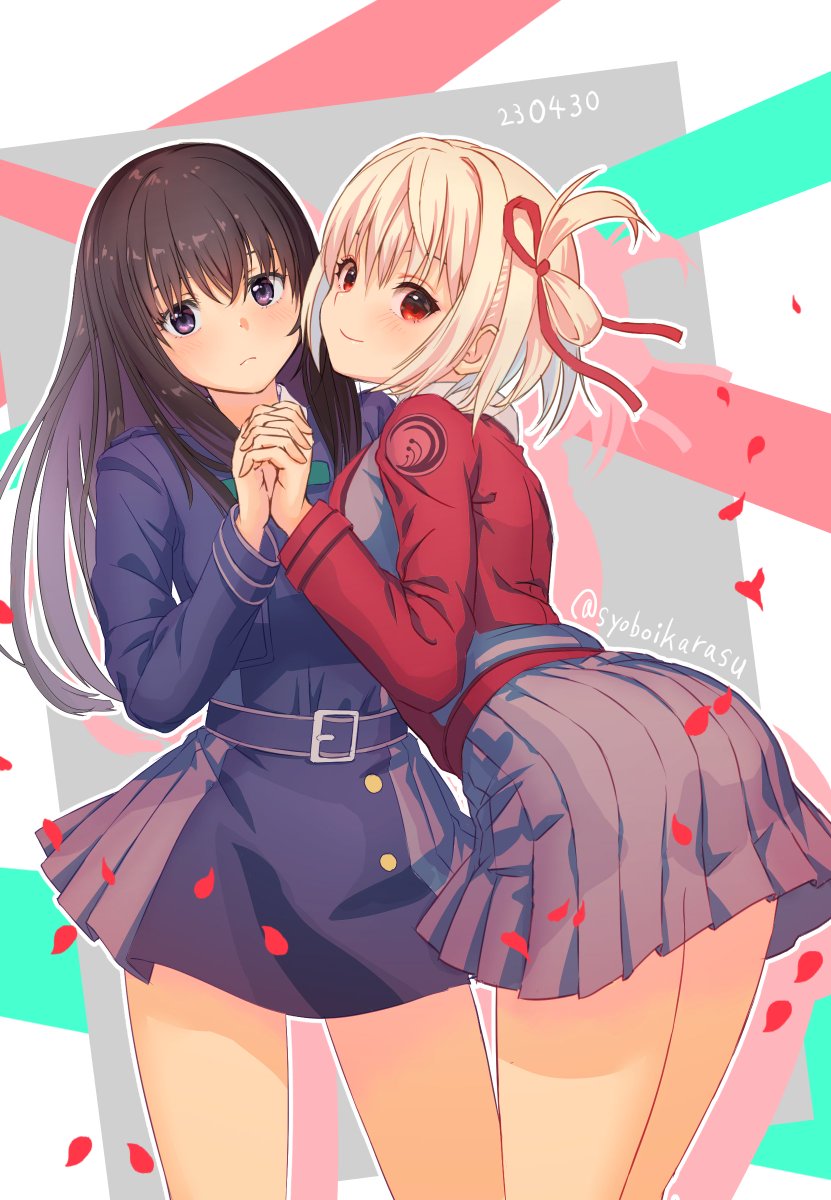 過去絵再掲7枚目、リコリス・リコイルで #ちさたき です😃 2022年12月 この前に書いたスレミオがすごい反響あったので、続けて前から描いてみたかったこの二人を書いてみました✍️ 新作楽しみですね😆❗️ #リコリコ #lycoris_recoil