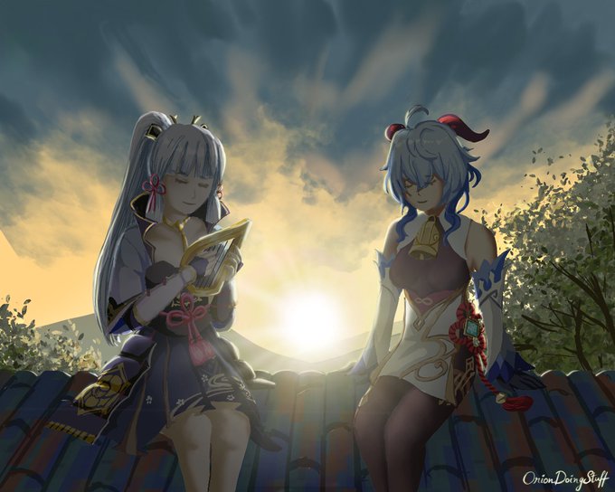 Drew a rendition of the time my friend 'Tomo' came to my world and played music and I listened. #Ganyu #ayaka #genshinimpactfanart #GenshinImpact #lyre #fanart #genshin