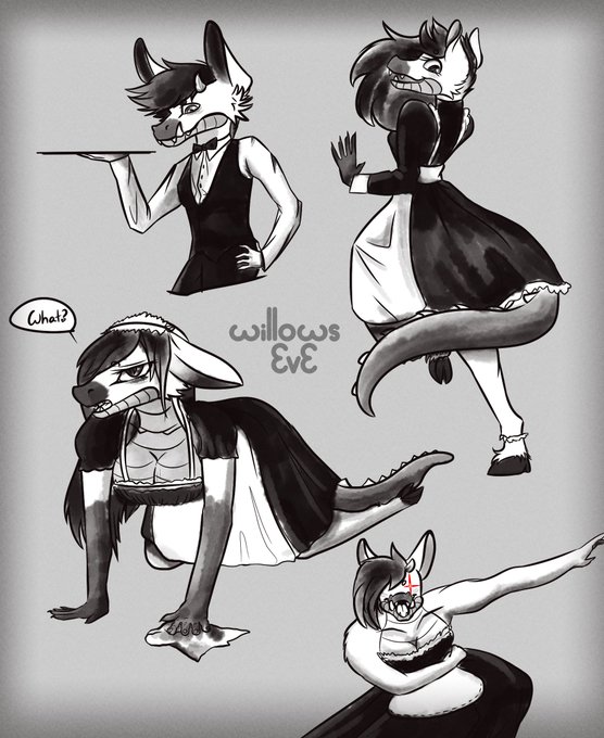 Inktober Day 12 Stuck #Inktober #inktober2021 #inktoberday12 #ipevo #furry #maiddress She's having a little trouble getting out of that dress...
