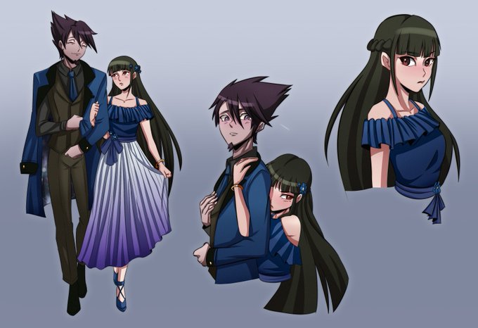 So Oct 8 was apparently MomoHaru Day?!?! I'm a bit late but here's the two of them in their matching 10th anniv outfits 💜❤️🥺 #DRv3 #danganronpaV3 #momoharu #Kaimaki #Kaitomomota #Makiharukawa