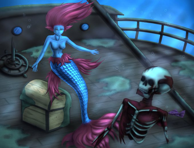 It's Done! Collab with @ElietteQlay @s3yry #drawing #digitalart #illustration #color #collab #skull #mermaid #sirena #mar #mermay #ArtistOnTwitter #artist