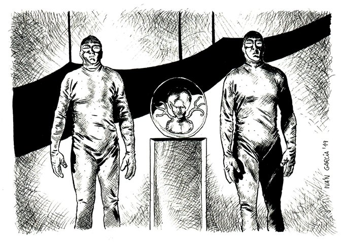 Vigesimotercer inktober: los marcianos de "Invasores de Marte". #inktober #inktober2019 #invadersfrommars #invasoresdemarte #martians #1950ssciencefiction #1950saliens #williamcameronmenzies #tinta #ink #ivaninktober
