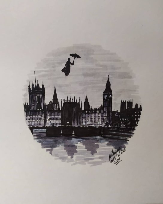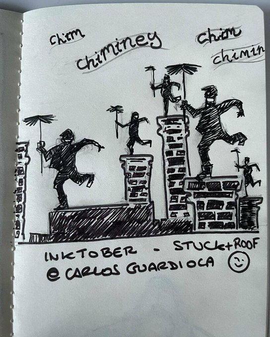 “Chim chiminey Chim chiminey Chim chim cher-ee! A sweep is as lucky As lucky can be” #inktober #inktober2021 #stuck #roof #marypoppins My intention was to draw Dick Van Dyke’s crew dancing over London, allegedly cleaning stuck chimneys. Then I realiz… instagr.am/p/CU64Sy5DE7Q/