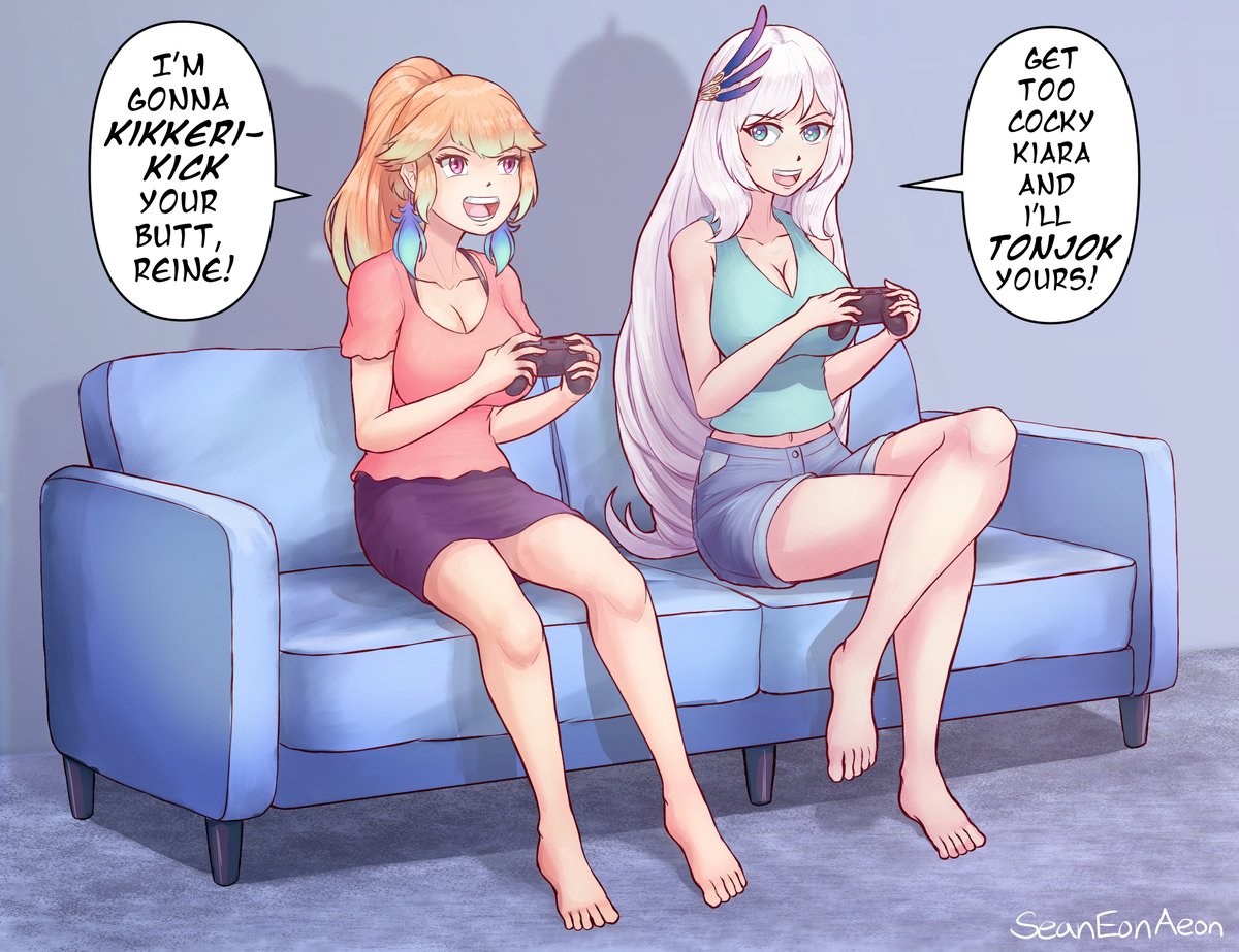 With Reine and Gura finally collabing this week, here's a silly picture I made to celebrate the occasion. #Reinessance #MERAKyats #PavoliART #gawrt #gawrgura