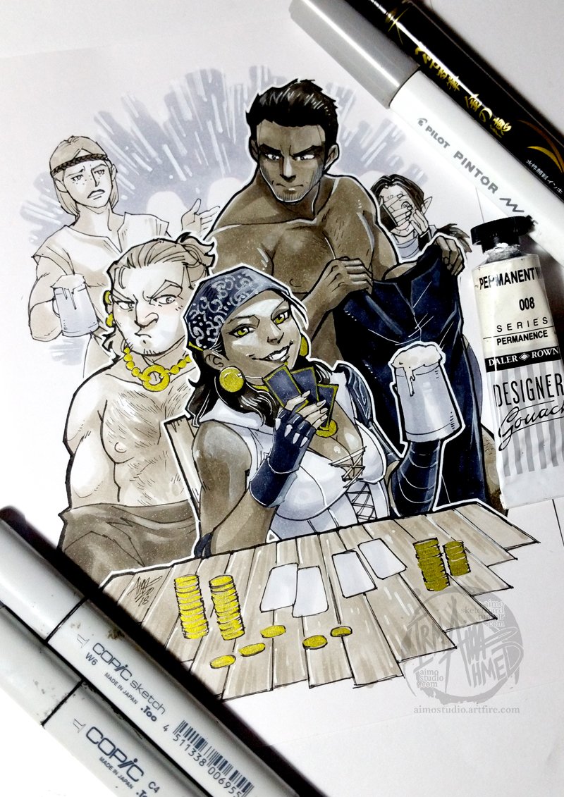 #Inktober2018 12: Whale She's not a Card Shark; She's a Card ORCA! #Inktober #InktoberMalaysia #DragonAge #Isabela #VarricTethras #Hawke #Merrill #Aveline #art #ink #copicmarkers #コピック #gouache #gold #silver