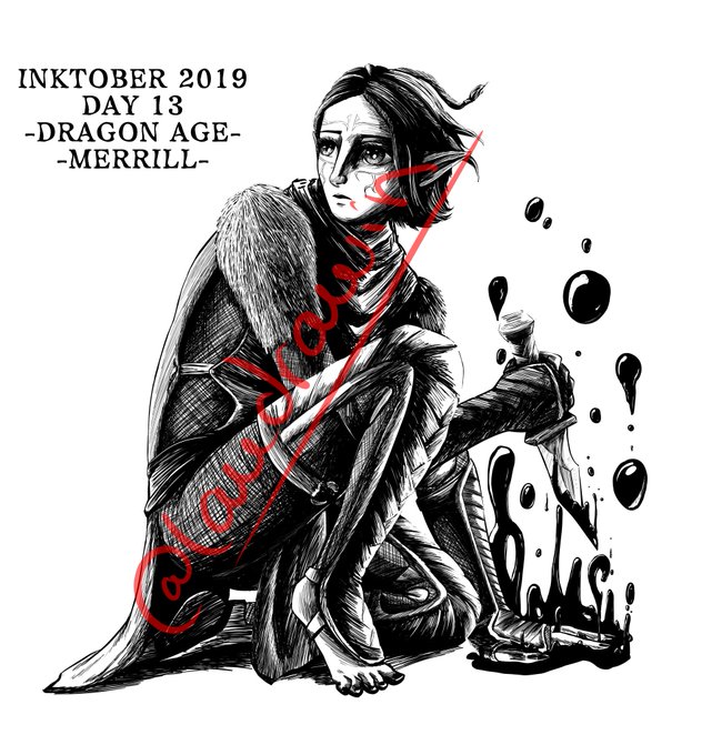 Inktober day 13: Merrill ❣️ What do you mean blood magic is bad? #inktober #inktober2019 #inktoberday12 #inqtober2019 #fanart #dragonage #merrill #merrillfanart #bloodmage #bloodmagic #merrilldragonage #dragonage2 #da2 #comic #inking #vallaslin #blood