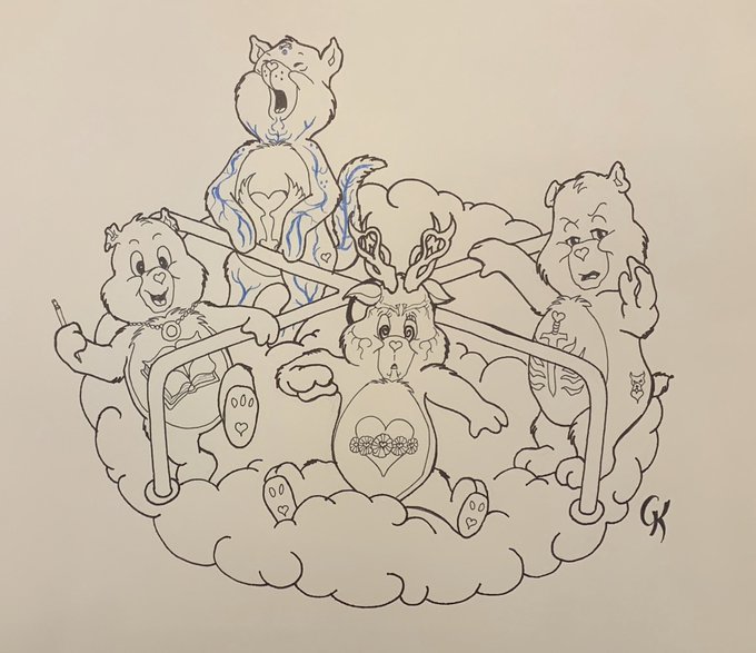 Day 24 Dizzy Welcome to Carekwall! Come on by and say hello to Merr-Bear, Care-ver, Lyrium Heart, and Bearric My #DragonAge #Inktober #Merrill #CarverHawke #Fenris #Varric #inktoberday24 #inktober2019