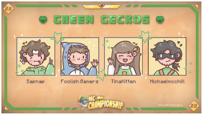 Green Geckos winner POV!! ~ ~ (rts are poggies) ~ #tinakittenfanart #sapnapfanart #michaelmcchillfanart #foolishfanart #mccfanart #mcc #mcc22 @tinakittenalt @sapnapalt @Michaelmcchill @FoolishTweeters