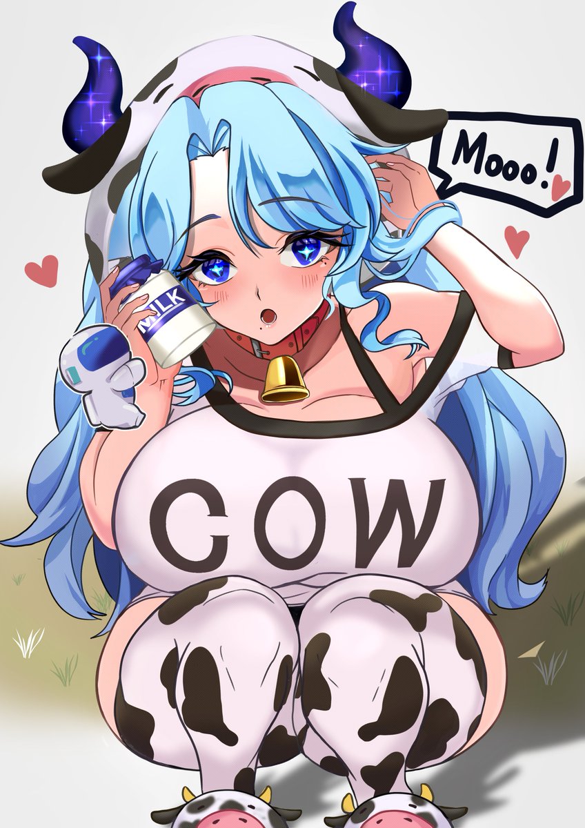 From: SNAKEEATINGMOUSE A huge shoutout to @Master_Biggles for depicting our Sussy Space Cow in a beautiful Belly Dancer outfit! She's Shmooving! @miilkywayz #miilkyart