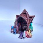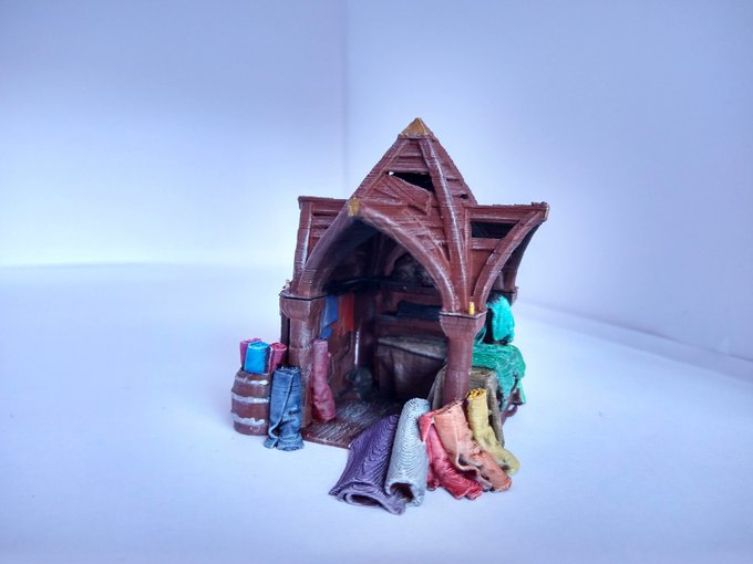 Progress 18: The fabric merchant: the texture of the 3d print worked super well for the wood. Less so for the fabrics. I still love the look! PLA, acrylics, inks. #dnd #minipainting #fantasy #miniatures #dnd5e #3dprinting #3dprint #minis #tabletop #tabletopgaming #dndart