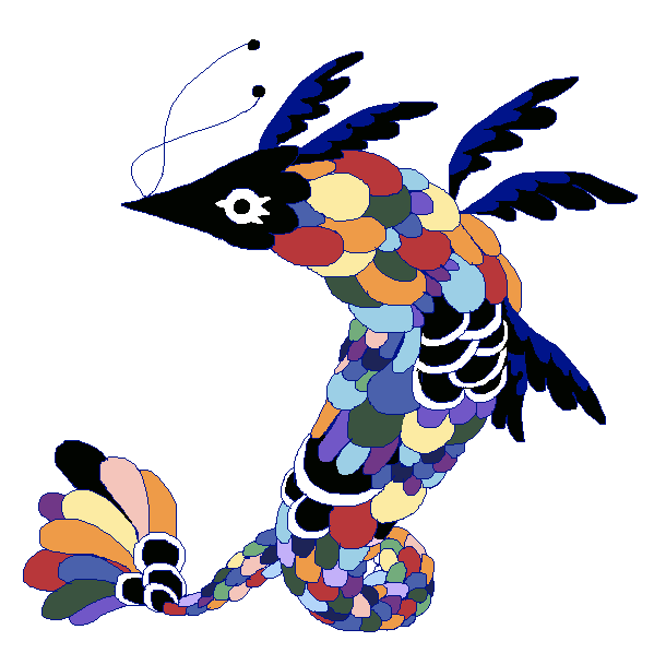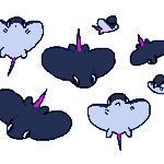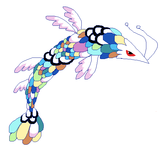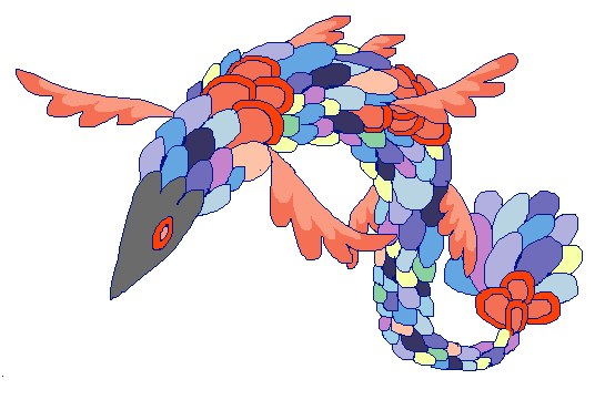 Galaversa: This rare beast can be found soaring in the skies near tall mountains on starry nights. It lands at dawn in beds of flowers, where its wings pick up pollen and stones that form the 'stars' it's known for. It is rather friendly to people. #monsterdesignmonday #pixelart