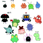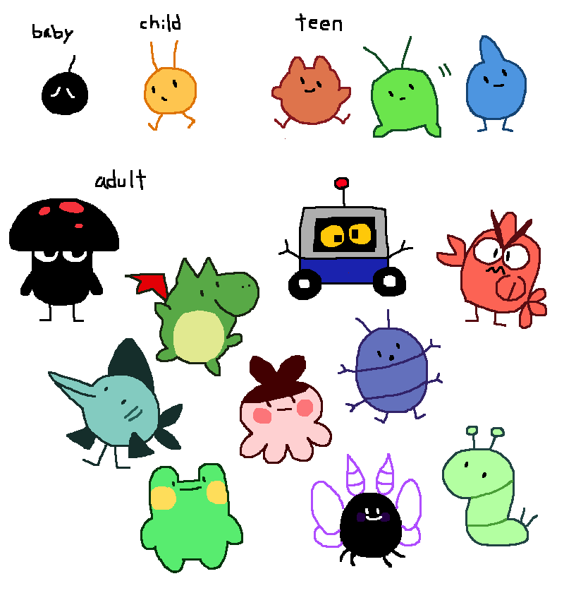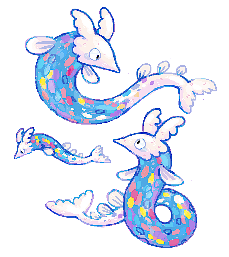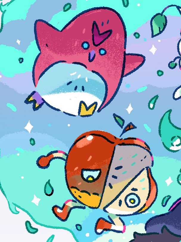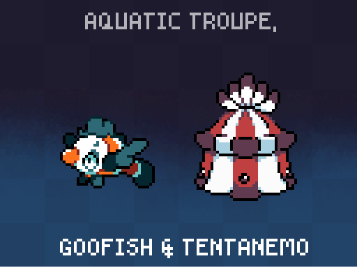 #monsterdesignmonday is upon us yet again! --- GOOFISH are the only creature immune to the potent liquid laughing gas secreted by TENTANEMO. Their abilities synergyze well, thus they are strongest when fighting together. --- #pixelart #candal