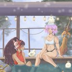 My hunters enjoying a hot spring with friends✨🌸 can you guess what hunter uses what weapon? 😘 #MonsterHunter #MonsterHunterRiseSunbreak #MonsterHunterWorld #art #artistsontwitter