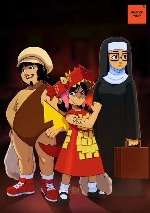 #Monstober drawing day 31 'trick or treat' featuring the Belcher kids as "andre 3000 the giant", "the dragon with the girl tattoo", and "nun of your business" see the full calendar deviantart.com/toroyo911/art/…