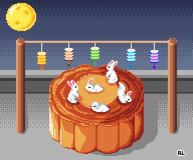Today is #MidAutumnFestival in Chinese society which is a fes for the whole family having a supper together. Also admiring the moon and eating moon cake. #pixelart #dotpict #dotpictart #ドット絵 #aseprite #madewithaseprite #像素畫 #mooncake #moon