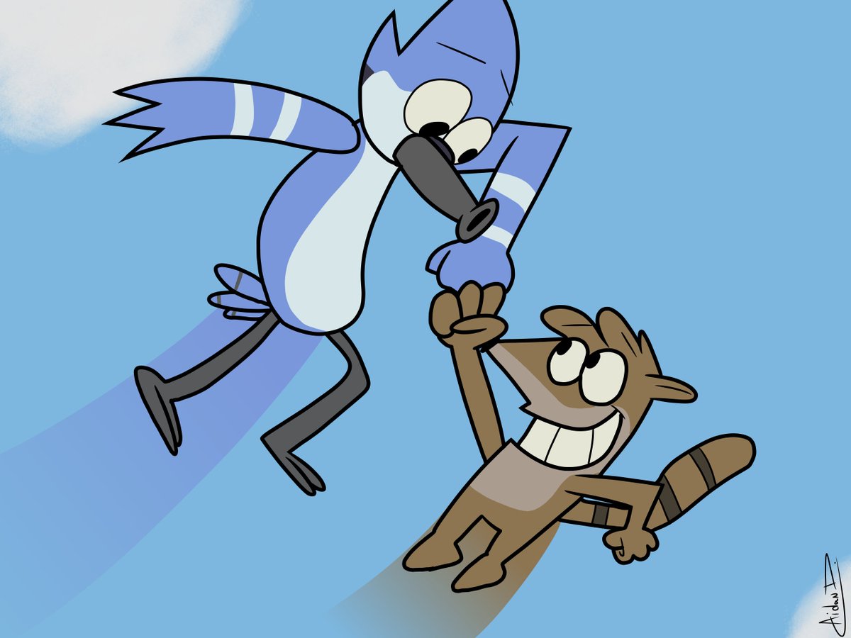 "And so once again, the day is Regular again, thanks to Mordecai and Rigby." Mordecai and Rigby in a sort of similar style to "The Powerpuff Girls". #StyleSwap #MordecaiAndRigby #FanArt #ArtistOnTwitter