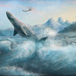 Some roam these lands unaware of roams below the horizon. A gigantic 17 meter long #Mosasaurus, beached on one of the late #Cretaceous European beaches, is proof of that. #MosasaurWeek done! Thanks for the initiative @EDGEinthewild #sciart #blender #Mosasaurus #paleoart
