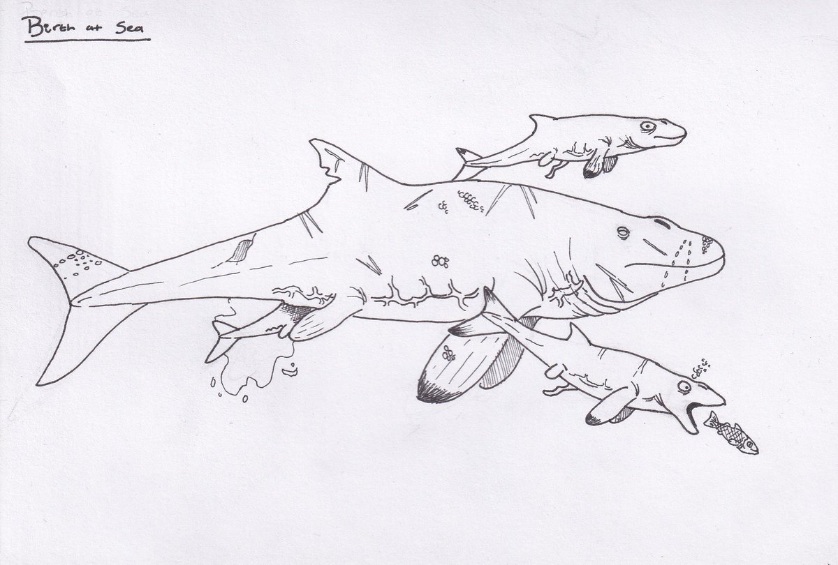 A quick mosasaur for the end of #MosasaurWeek I think I wanna get into #paleoart so this was a nice intro! I figured mosasaur could have had pilot fish friends too, just like sharks today