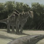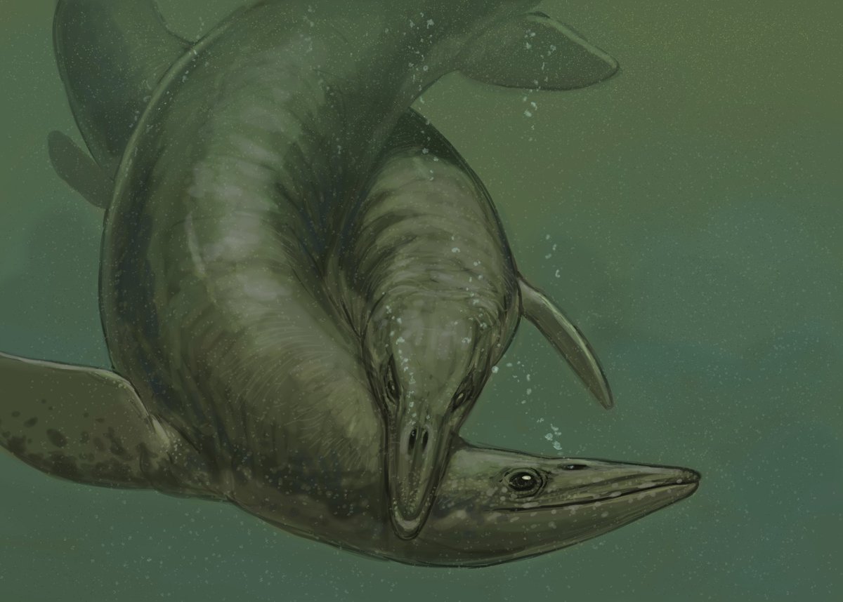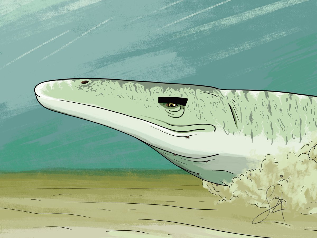 Mosasaur parasites? Yes, no, maybe? Light piece done for #MosasaurWeek of M. conodon scratching away some lice. #paleoart #scicomm #sciart #speculation
