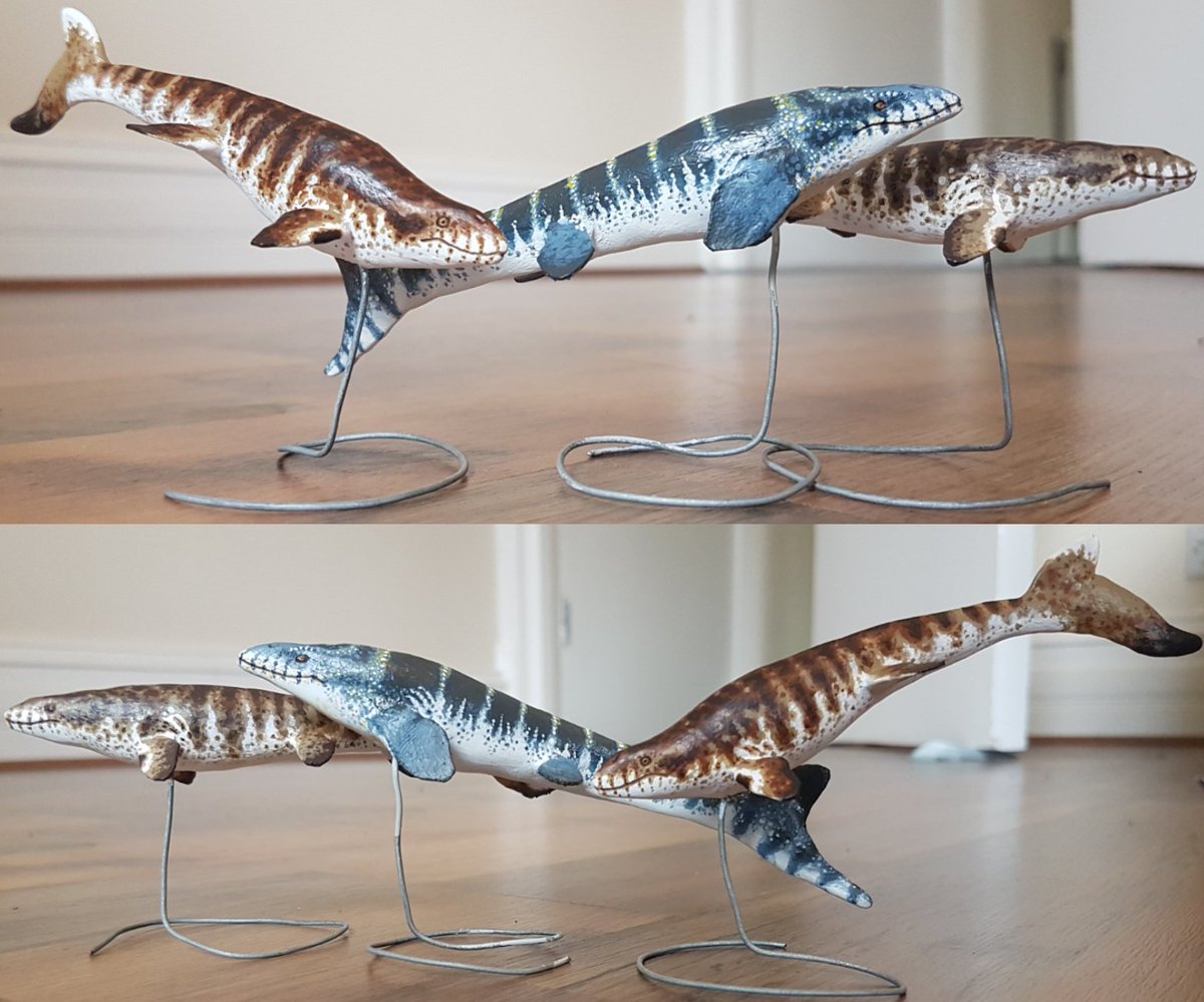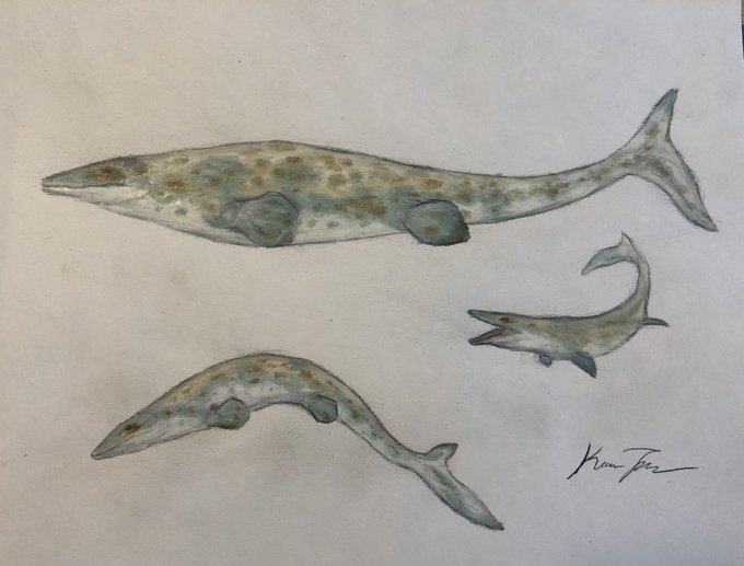OK, I'm super late for #MosasaurWeek, but I've been so busy that time moves at a different speed in my brain - it's still 2010, right? Here's some #paleoart of Mosasaurus (2021) and Prognathodon (2020 and 2017) to join in the fun.