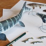Results from the #MosasaurWeek #paleostream! Plioplatecarpus, Plotosaurus, Mosasaurus and Eremiasaurus. #paleoart #mosasaurs #forest #sea #creteaceous #netherlands #maastricht #sciart #scicomm #sketch