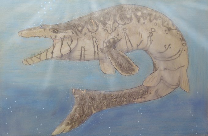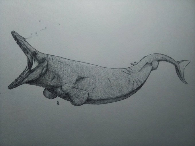 Here's my very late drawing for mosasaur week! I wanted to go for a orca like lizard look for my design #MosasaurWeek #MosasaurMarch #MosasaurMadness #paleoart