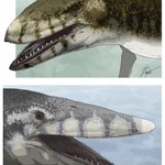 Teeth adaptation in Mosasaurs : - Globidens : blunt teeth used to crush shells - Xenodens : saw-like teeth likely used to carve out pieces in bigger prey or scavenge - Clidastes : like most mosasaurids, piscivorous or generalist diet. #MosasaurWeek #paleoart