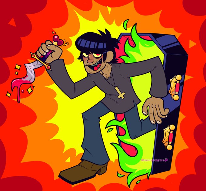 Reverse #Gorillaz au be upon you 🎸✨ #RusselHobbs #MurdocNiccals #StuartPot #NoodleGorillaz #DeltheGhostRapper