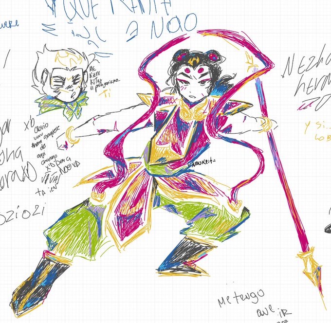 damn so contrasting, i made a ne zha in whiteboard wth somefriends @_gaygalaxy15_ inspecial... and a wukong inclipstudioooooo yeyeye i´ll make more kdjsfjf #MonkieKid #lmk #monkiekidfanart #LEGOMonkieKid #nezha #wukong