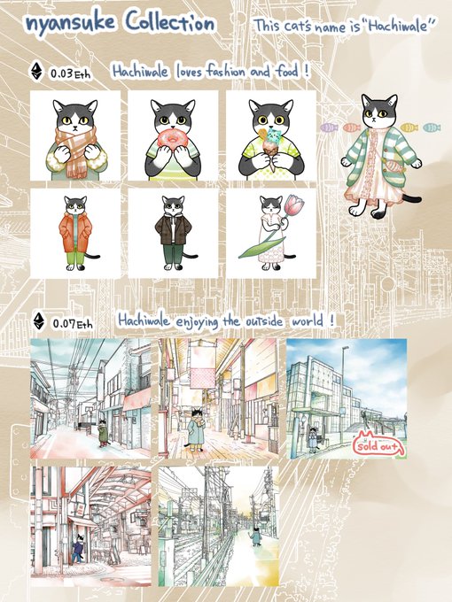 🐱猫の猫コレクション🐱 ハチワレ🐈⬛美味しい物やオシャレが好きなハチワレちゃん opensea.io/collection/nya… 猫パン🥖ハチワレ店長のパン屋🥖友猫挟んでます opensea.io/collection/nek… FND🌈描いてます!🐱❤️🔥 foundation.app/@nyansuke #NFT #NFTCollection #NFTcat #NFTCommunity #NFTartist
