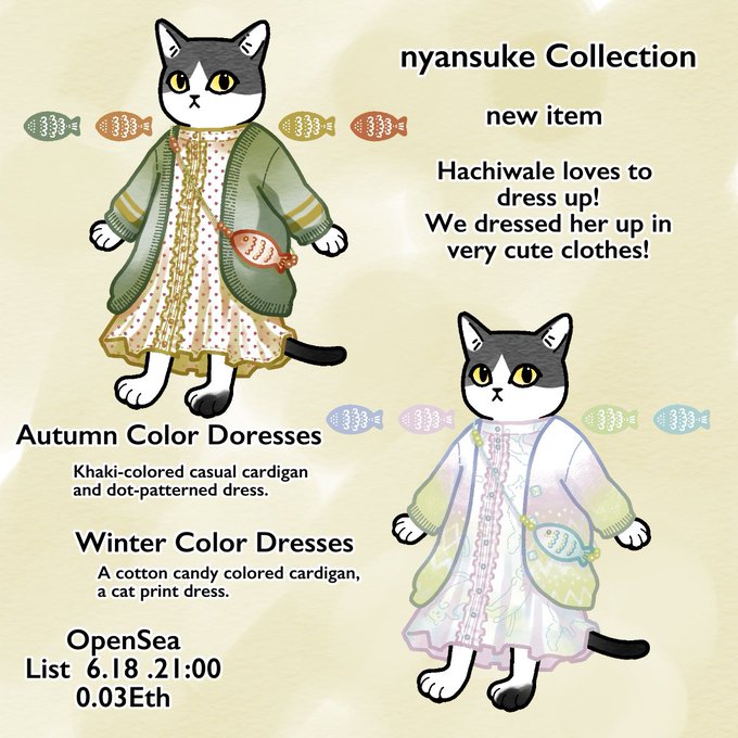ハチワレちゃんお洋服シリーズリストしました🐱💖 ワンピースシリーズ👗パーソナルカラー秋、冬バージョンです🐱 今回はドットのワンピースと猫柄ワンピースです💖 秋 opensea.io/assets/ethereu… 冬 opensea.io/assets/ethereu… @opensea より #NFT #NFTCollection #NFTCommunity #NFTartist #NFTcat