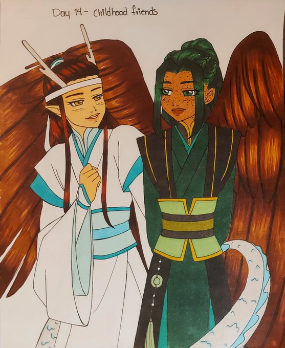 #inktober2021 #nielan Day 14: childhood friends I had to go for baby nielan, could not help myself. And of course i had to push it a bit further and go for dragon lxc and bird nmj. For reasons.