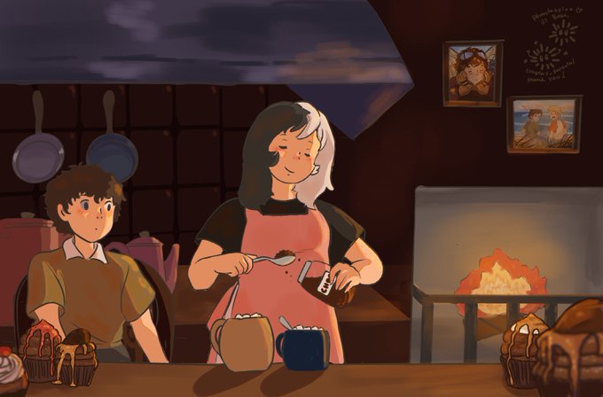 ▸𓏲ּ Warm fire and some hot chocolate ˖✧ʚ { #tubbofanart #TUBBO } { #nihachufanart #nihachu }✧