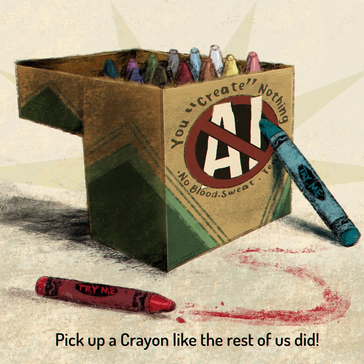 AI users think artists are gatekeeping art & failing to understand what artists are pointing out is that their work, style identity, emotion, etc. are trained/fed to a machine to replicate their work with 0 consent. #noai #artstation #aitheft #HumanArtists #humanartbyhumans