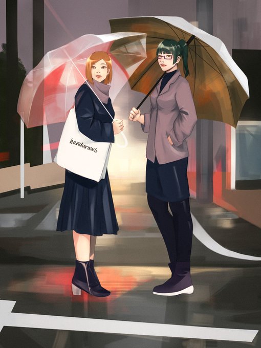 Day 2 #nobamakiweek2021: Mutual Pining "The two in the rain" #JujutsuKaisen #NobaMaki #nobarakugisaki #makizenin #呪術廻戦 #のばまき #禪院真希 #釘崎野薔薇 #まきのば #真希 #野薔薇 #百合 #少女愛 #呪術廻戦ファンアート #呪術廻戦イラスト