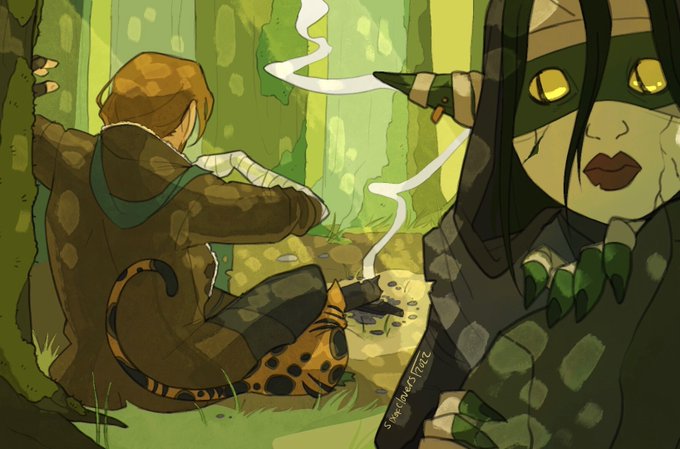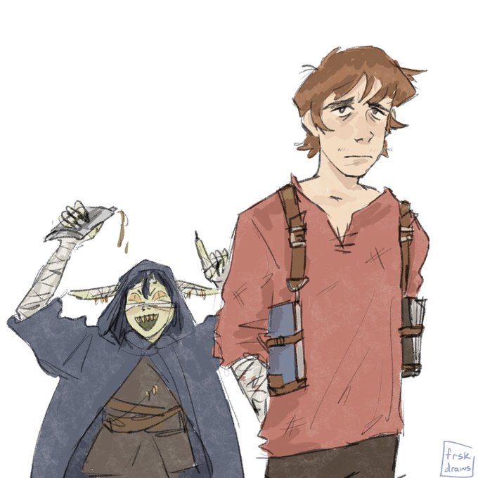 “Skitter up. See that one? That's a planet, that one. That's another place” “No. No, we're on a planet” 。・:*˚:✧。✧・゚: *✧・゚:* ‧͙⁺˚*・༓☾ ︑︒⚬∙︓·⠄ quick afternoon sketch for my favorite buddies 💚💛🧡 #criticalrolefanart #CriticalRole #calebwidowgast #nott
