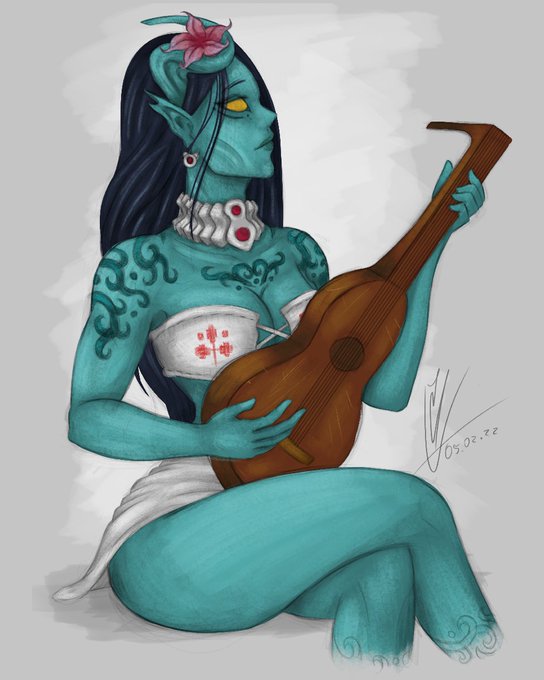 Rusalka with a lute . . . #dndart #DnDcharacter #digitalart #characterart #fantasyart #digitalpainting #cute #nymph #OC