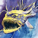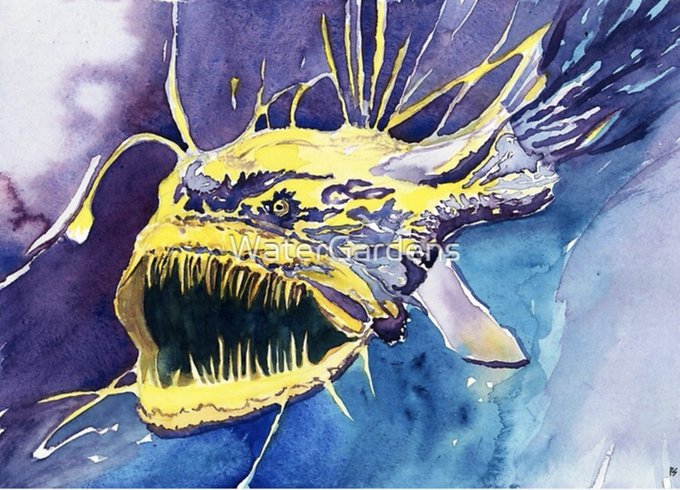 My watercolour of an angler fish on stuff in my #Redbubble shop tinyurl.com/ycaezxm9 🐟🐟🐟🐟🐟 #Fish #Fishing #AnglerFish #Ocean #Sea #Marine #GiftIdeas #WatercolourPainting #WallArt #Stationery #Decor #CommissionsOpen #ArtistOnTwitter #Clocks #Coasters #Dining #Kitchen
