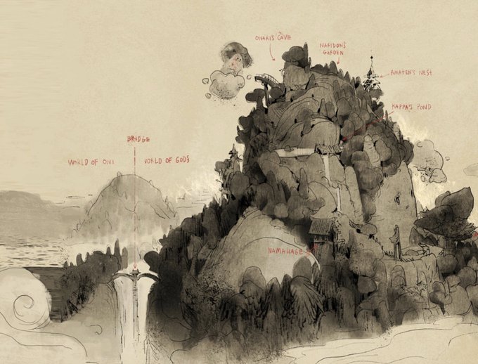 公開されたので、今まで描いてきた #ONI のアートも少しずつ出していきたいなと思ってます。😊 一つ目は、おなりとなりどんが住む家のコンセプトアート。 デザインは社長のロバートと、アートリードのリアがやってます。 #神々山のおなり #どんつこわっしょい